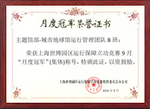 - 2010年上海世博園運(yùn)行保障立功競(jìng)賽“月度冠軍”(集體)稱(chēng)號(hào)——通用汽車(chē)館部